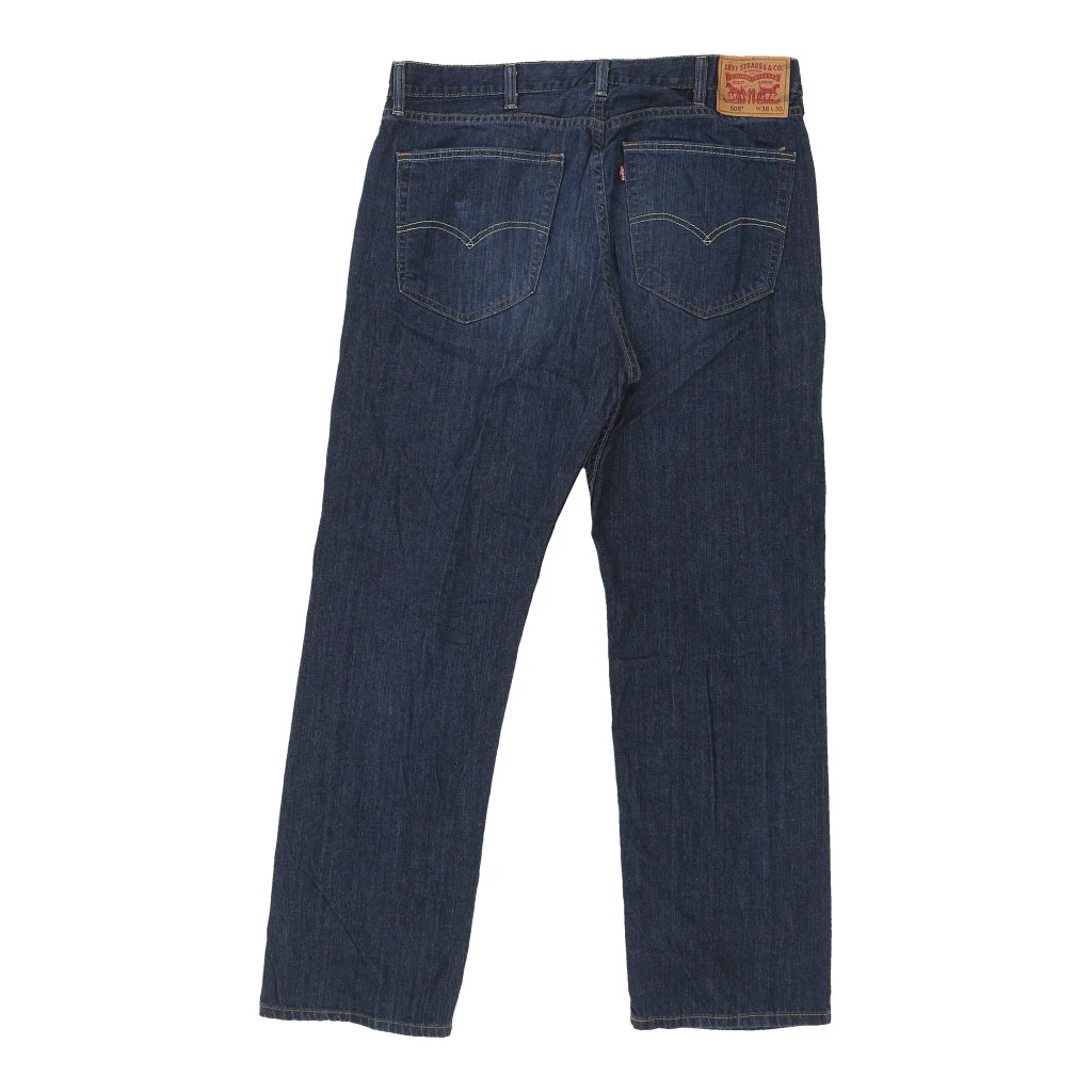 Vintage Levis 505 blue jeans, fit a 36″ waist and 29″ inseam.