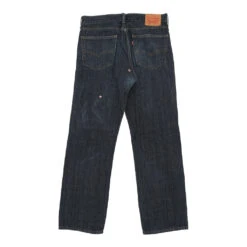 Vintage Levis 559 dark wash jeans, fit a 36″ waist and 32″ inseam.