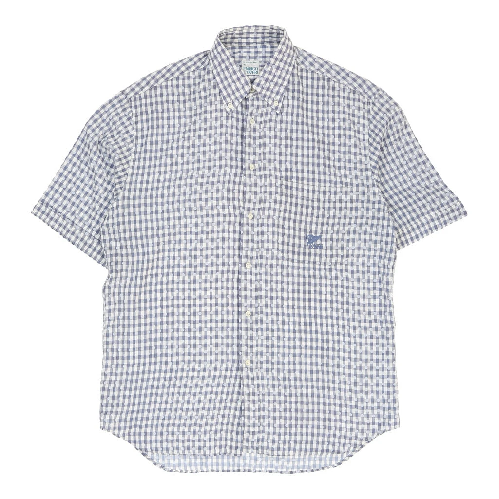 Vintage blue Enrico Coveri short sleeve shirt, fits medium.