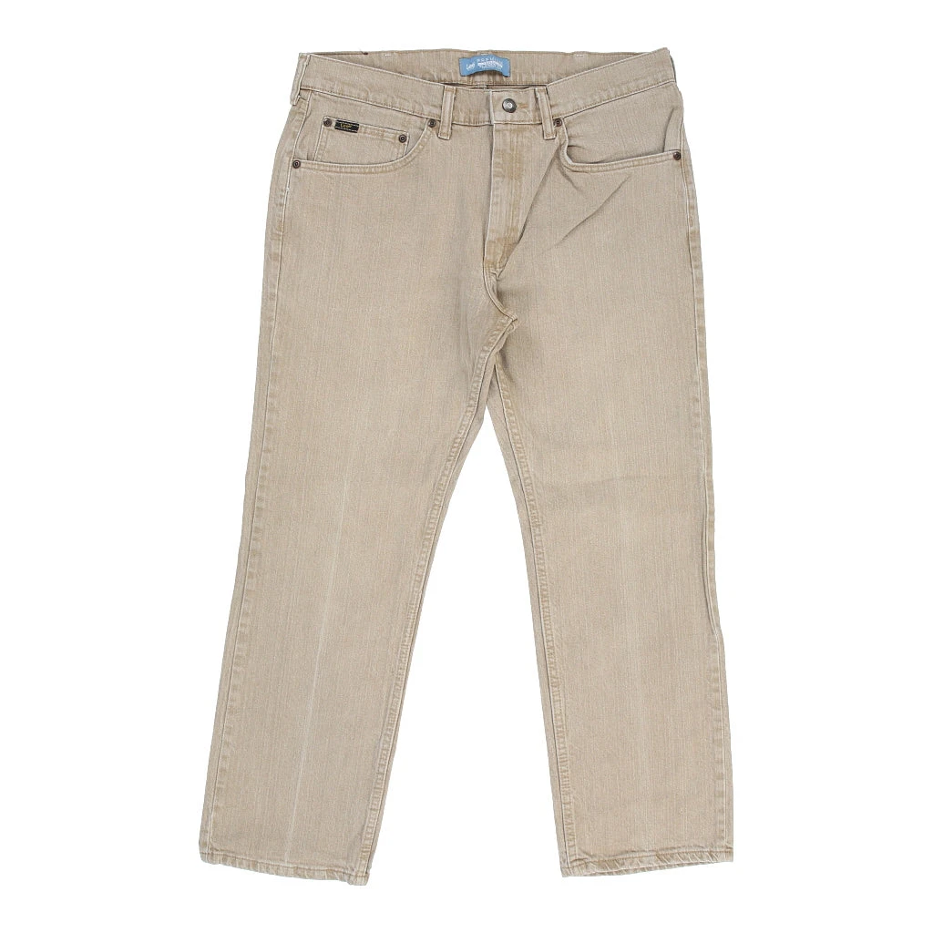 Vintage Lee beige jeans, fit a 35″ waist and 29″ inseam.