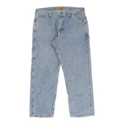 Vintage Lee blue jeans, fit a 38″ waist and 30″ inseam.