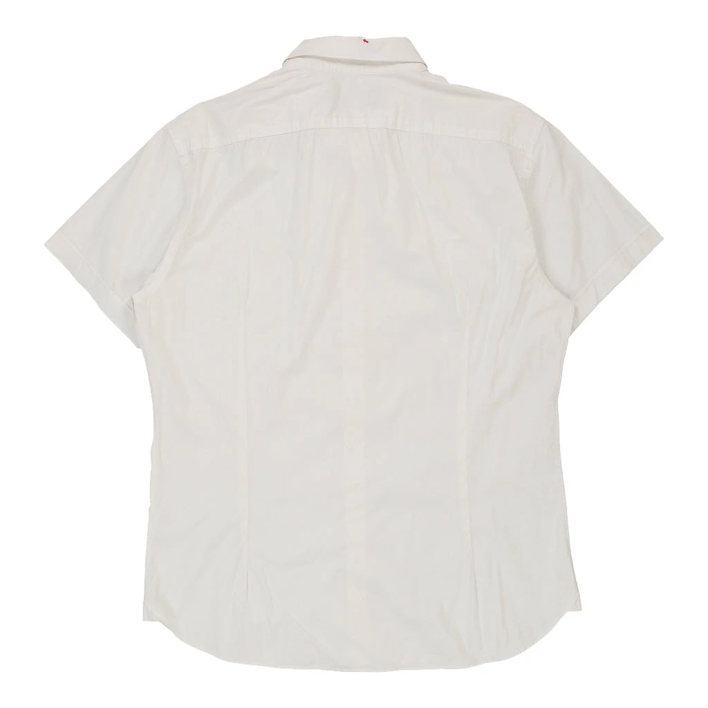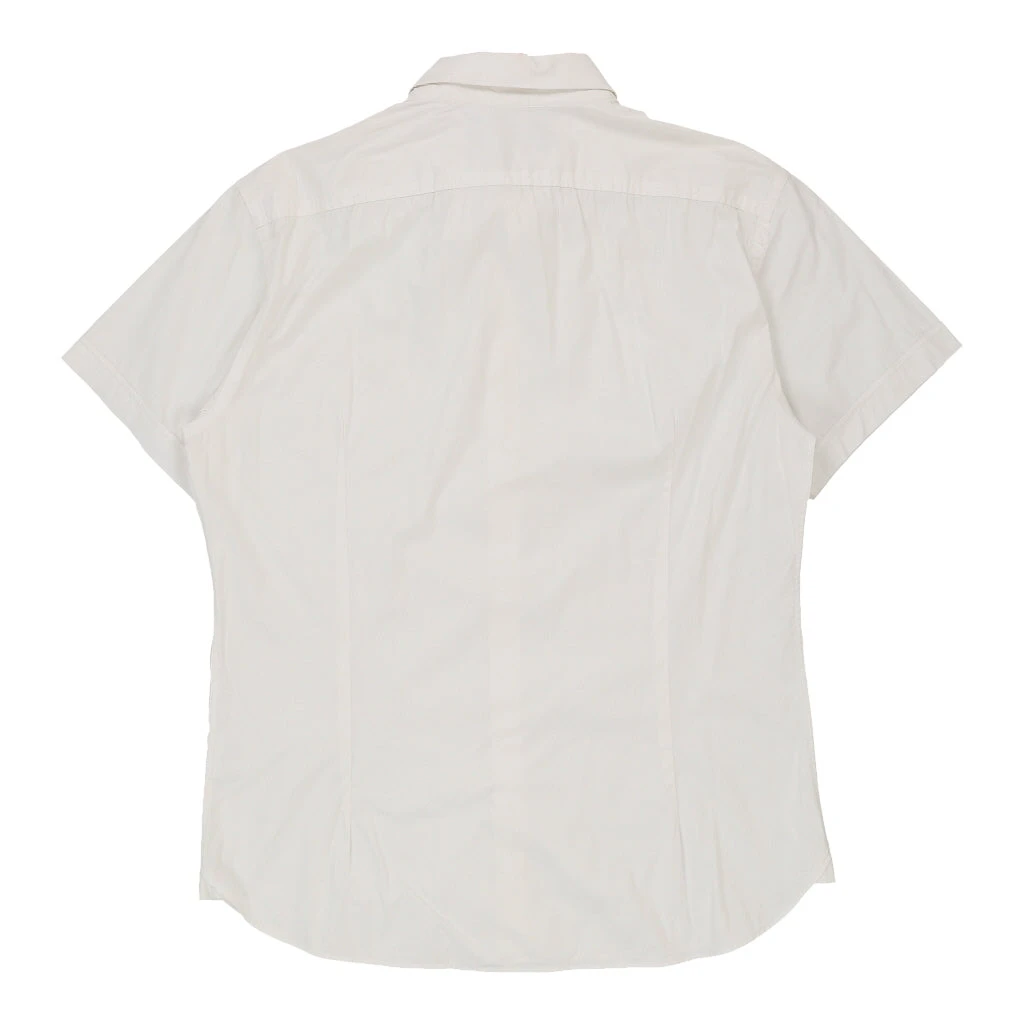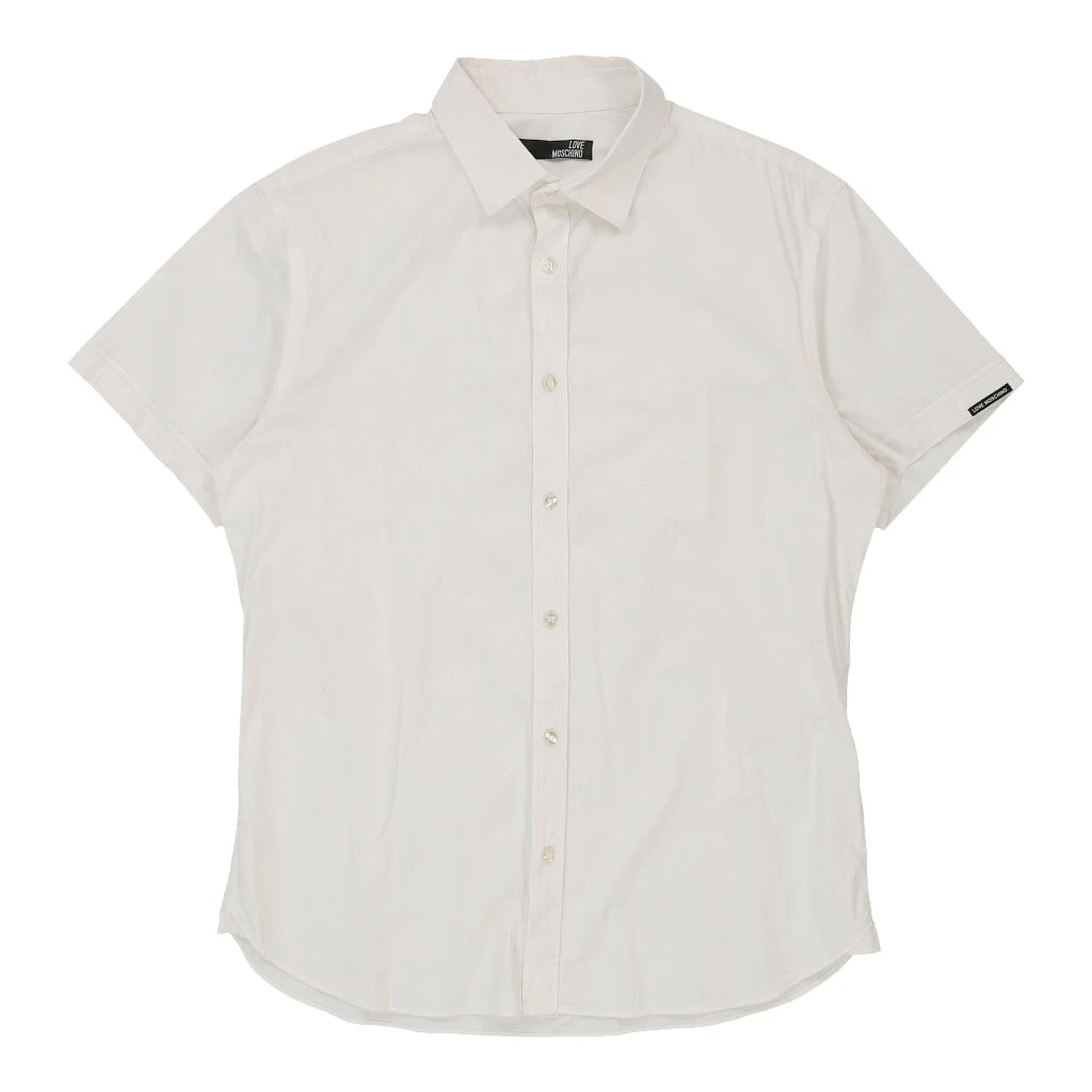 Vintage white Moschino short sleeve shirt, fits x-large.