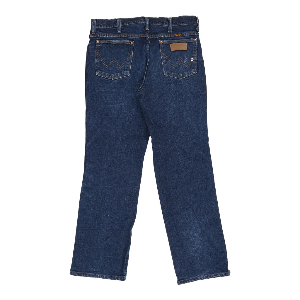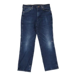 Vintage Wrangler blue jeans, fit a 33″ waist and 29″ inseam.